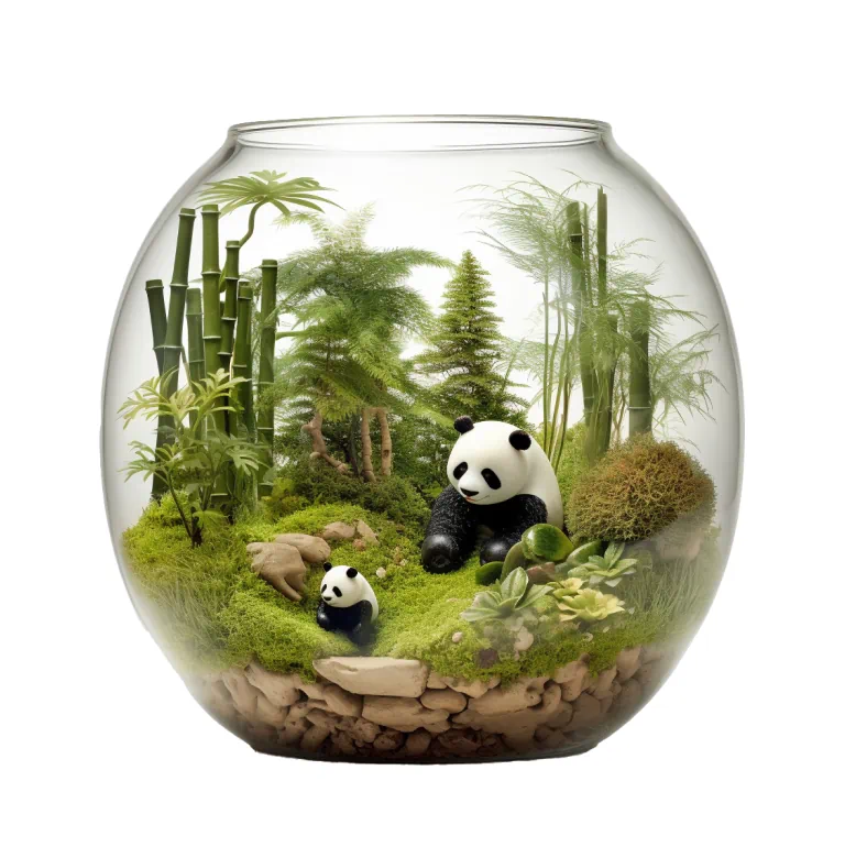 สวนขวดแก้วพร้อมหมีแพนด้า